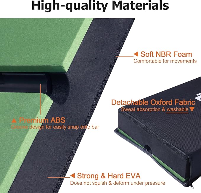 - 💪 PERFECTLY SOFT BUT YET HARD ENOUGH: Made from premium high-density NBR foam and ABS + EVA, with 600D oxford fabric. The back pad has a soft foam exterior and rigid core, which is firm enough that you don’t feel the bar through it, but padded enough to feel very comfortable on back, giving your the the most comfortable and convenient hip thrust solution.