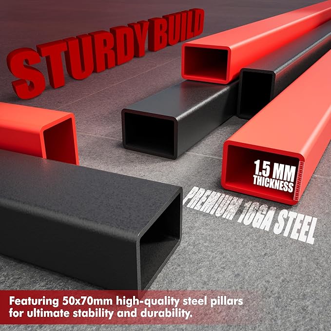- Sturdy and Stylish Construction: Crafted from industrial-grade 50*70mm steel with 1.5mm thickness, this adjustable weight bench’s structural integrity is unmatched. Featuring a beautifully welded frame, it combines durability with a sleek, modern look.