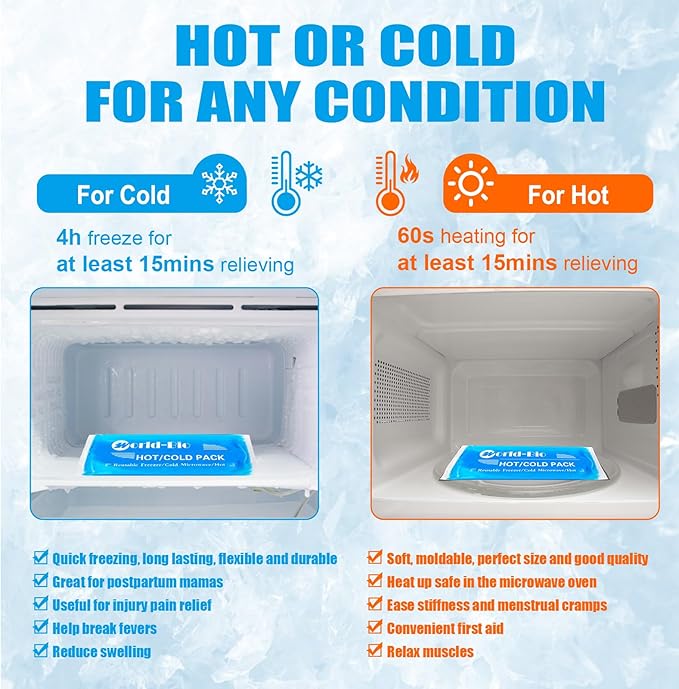 - 【Hot or Cold Therapy—Your Choice】 – Chill in the freezer for instant cooling relief that reduces swelling, or microwave/boil for gentle heat that boosts circulation and speeds healing of strains and inflammation.