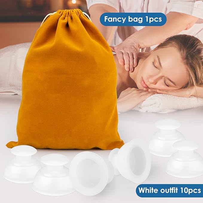 Silicone Cupping Therapy Sets 10pcs,Professional Vacuum Cupping for Myofascial Massage/Joint Pain/Anti Cellulite/Deep Muscle Relief & More (10pcs,White)