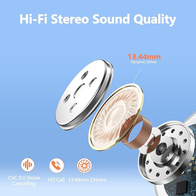 - UPGRADED BLUETOOTH 5.3 CHIP AND ONE STEP PAIRING: Wireless headphones are powered by 2025 upgraded Bluetooth 5.3 chip technology, which improves audio data transfer speed by 85%, uninterrupted and stable transmission, and lower energy consumption (up to 15 meters), making it easy to control your music and phone calls in the home, office, or wherever you are; After initial connection, the device will automatically pair with ear buds, simply remove the bluetooth earbuds from the charging case and automatically connect to your phone