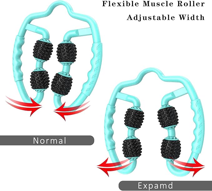 Cellulite Massage Tool Muscle Roller - Deep Fascia Massager & Dimpled Skin Remover for Legs, Thighs & Buttocks - Anti-Cellulite Roller, Smooth Skin, Pain Reliefs (Green Black-4 Wheel)