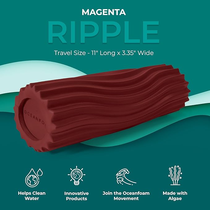 Oceanfoam Ripple Travel Foam Roller (11" x 3.35") Firm Mini Foam Roller for Physical Therapy, Deep Tissue Massage, Back Pain - High Density, Ergonomic Wave Textured - Yoga, Pilates, Exercise (Maroon)