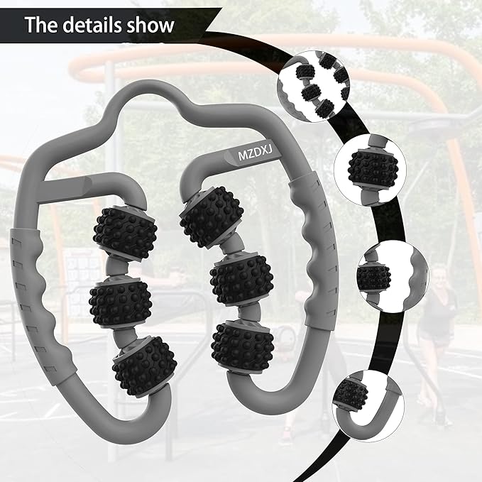 Cellulite Massage Tool Muscle Roller - Deep Fascia Massager & Dimpled Skin Remover for Legs, Thighs & Buttocks - Anti-Cellulite Roller, Smooth Skin, Pain Reliefs (Grey Black-6Wheel)