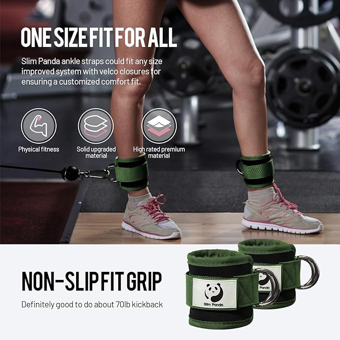 Slim Panda Ankle Strap for Cable Machine,Ankle Cuff for Kickbacks, Booty Hip Abductors,Glute Workouts, Leg Extensions, Curls for Men and Women, Adjustable with Double D-Rings