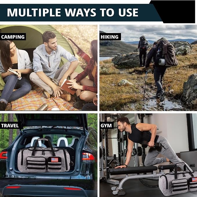 - 【Multifunctional Duffle Bag】The gym bagpack Measuring 25.6"L x 11"W x 10.7"H with a 50L capacity, this multifunctional large duffle bag is both stylish and practical. Perfect for a variety of uses, it can serve as a gym bag, travel bag, sports duffle, overnight bag, weekender, hospital bag, business travel bag, dance bag, camp duffle, airplane carry-on, university duffle, or swim bag.