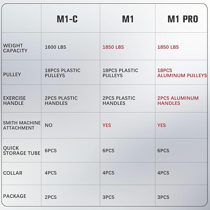 - Abundant Accessories Included: The M1 is fully equipped with various accessories such as Landmine, T-bar, Dip Handles, J-hooks, Safety Spotter Arms, Band Pegs, 2 Exercise Handles, and Foot Tube. These additions enhance the machine, offering users a complete and diverse home gym experience.
