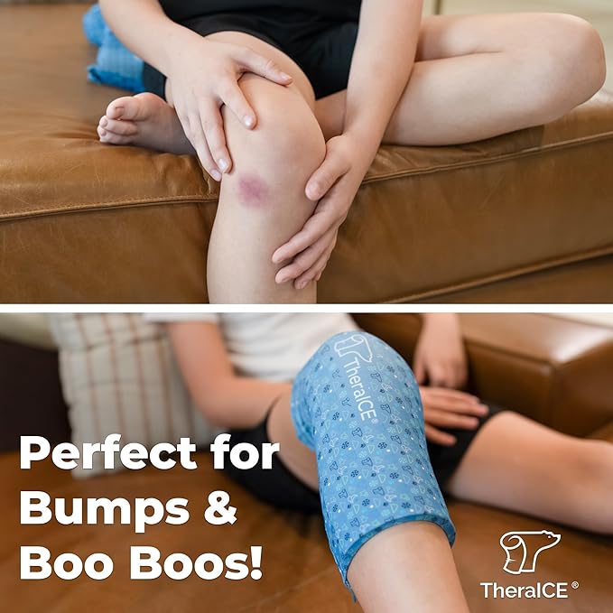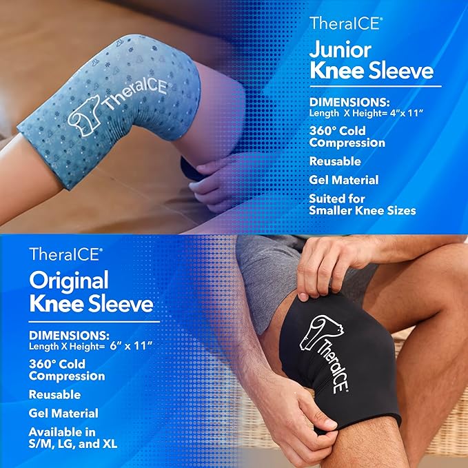 TheraICE Junior Knee Ice Pack Wrap Compression Sleeve for Injuries, Reusable Gel Cold Packs Brace Also for Ankle & Calf - Flexible Cold Wrap Recovery for Meniscus, ACL, MCL Pain Relief (X-Small)