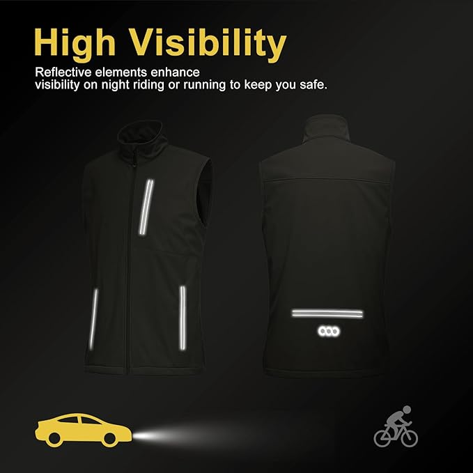 • RUNNING VEST FOR MEN WITH REFLECTIVE FEATURES- There's a stand neck collar with a wind guard under the zipper, drawcord hem that help seal out the elements and adjust the fit. It comes with pretty colors with reflective contrast piping that provides high visibility when running at dark.