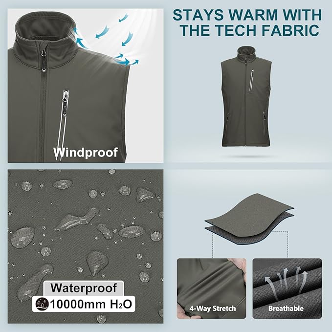 • WINDPROOF & LIGHTWEIGHT: This 33,000ft softshell vest is crafted with windproof lightweight fabric that keeps you warm and dry.