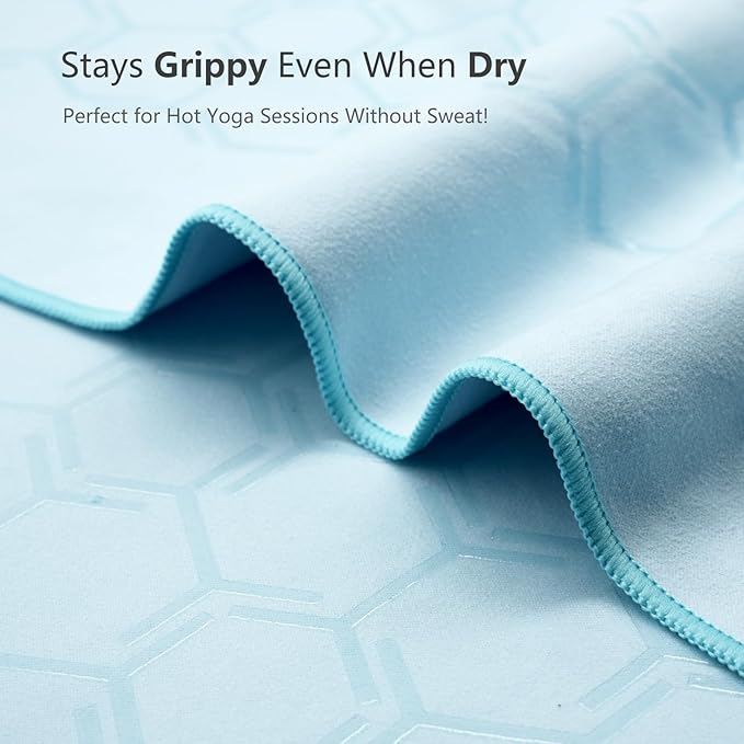 - NON-SLIP & SKID-LESS: The yoga towel, with its honeycomb design, ensures a slip-free practice. Made of soft microfiber, it features a double-sided embedded silicone pattern that grips the mat or floor, providing a smooth, non-slip surface without bumps. This textured surface maintains traction even when wet, allowing you to focus on your practice.