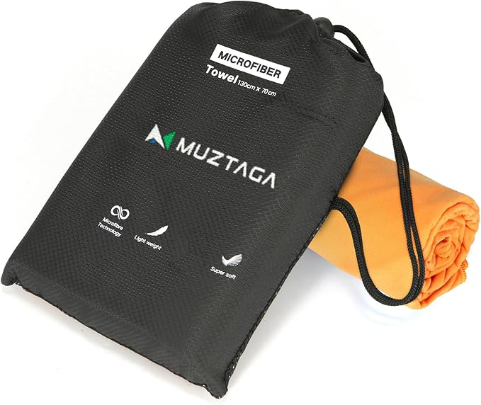 - This Muztaga microfiber towel is machine washable, sand-free, lightweight, breathable and durable. Perfect for camping,traveling, hiking, swimming, bath, gym, yoga.