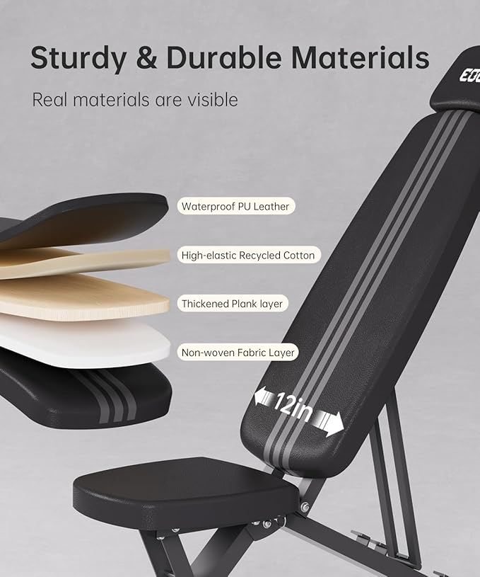 - Versatile for All Body Types: Features 8 backrest positions, 4 seat adjustments, and 3 foot hook settings, our adjustable weight bench allowing for quick modifications to accommodate different exercises and body types—whether you're 5'5" or 5'11". It's an ideal choice for strength training, bodybuilding, and more.