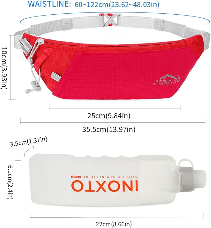 - ❤【Large Main Compartment Capacity】The Inoxto Running Belt Fanny Pack is a lightweight running waist pack that weighs only 200 grams. Its main compartment is designed to be spacious and can store mobile phones, tissues, keys, cash, cards, sports products, etc. This product is suitable for most smartphones with screen sizes below 6.6 inches, ensuring that users can conveniently carry essential items during exercise and enhance their exercise experience. Its lightweight nature makes running.