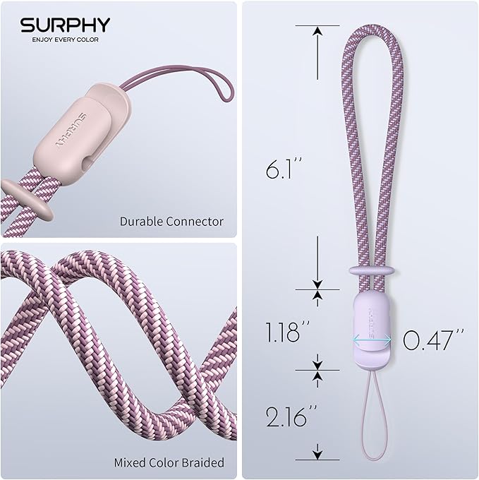 - Anti-fall Phone Lanyard : Lanyards is equipped with a sliding clasp, slide the clasp to adjust the lanyard to the right elasticity for your wrist, keeping the lanyard securely locked to your wrist, eliminate the risk of your cell phone falling out of your hand
