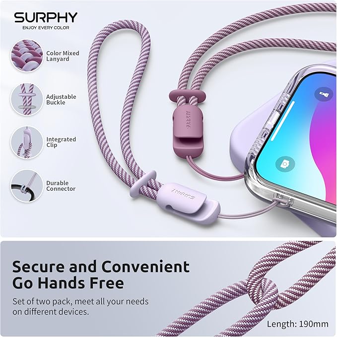SURPHY 2 Pack Phone Lanyard for Cellphone Case, Phone Wrist Strap for Case, Cellphone Strap with 2-Color Braided, Charm Wrist Lanyard for Women and Men, Lilac & Lilac Purple