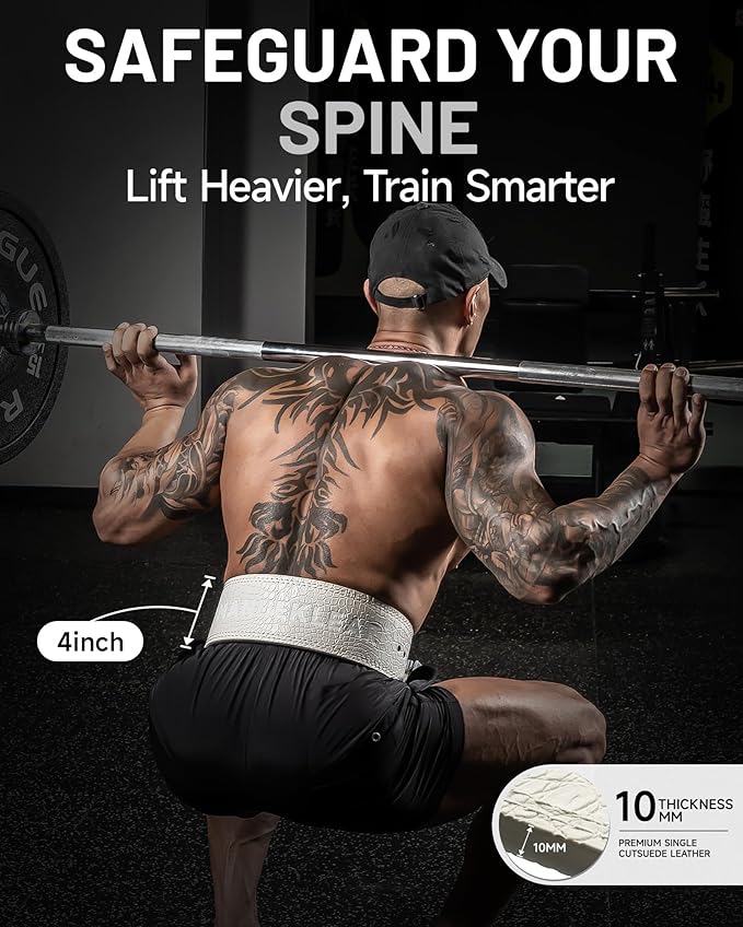 - MAXIMUM SUPPORT TO ELEVATE YOUR PERFORMANCE: The 10mm thickness and 4-inch width deliver outstanding back and core support, helping you stay aligned during your lifts. Perfect for squats, deadlifts, and heavy powerlifting, this belt keeps you stable, reduces the risk of injury, and lets you focus on pushing past your limits. Compete with confidence, knowing that your form is solid and your body is protected.