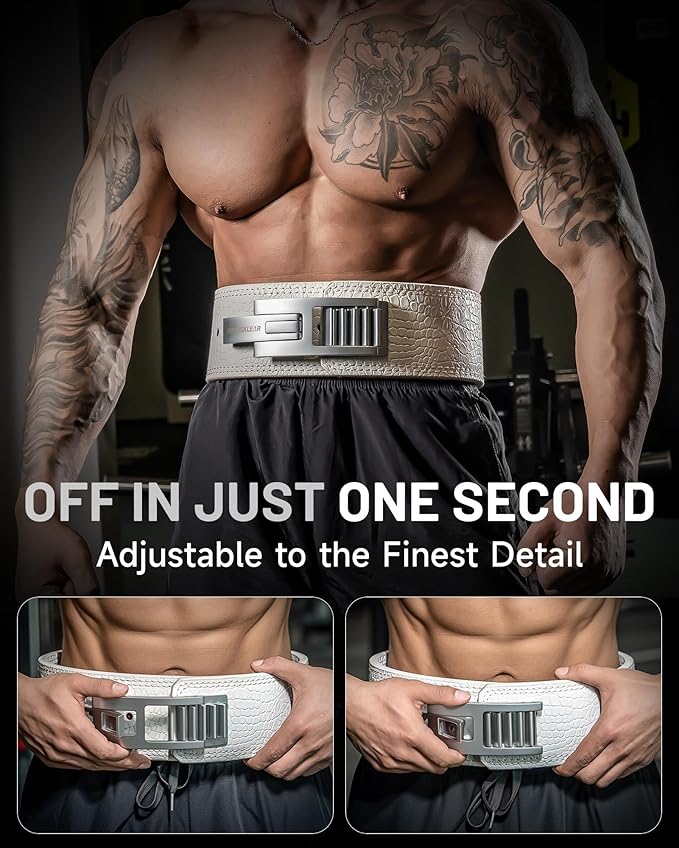 - QUICK LOCK & EFFORTLESS ADJUSTMENT FOR SEAMLESS WORKOUTS: Experience unmatched convenience with our upgraded quick-locking lever buckle. Designed for fast adjustments, this innovative buckle allows you to secure and release the belt in just a few seconds. The convertible screwdriver lets you easily switch buckle positions, ensuring a perfect fit and stable support during every lift. Enhance your workout efficiency with this streamlined, user-friendly design that keeps your focus on performance.