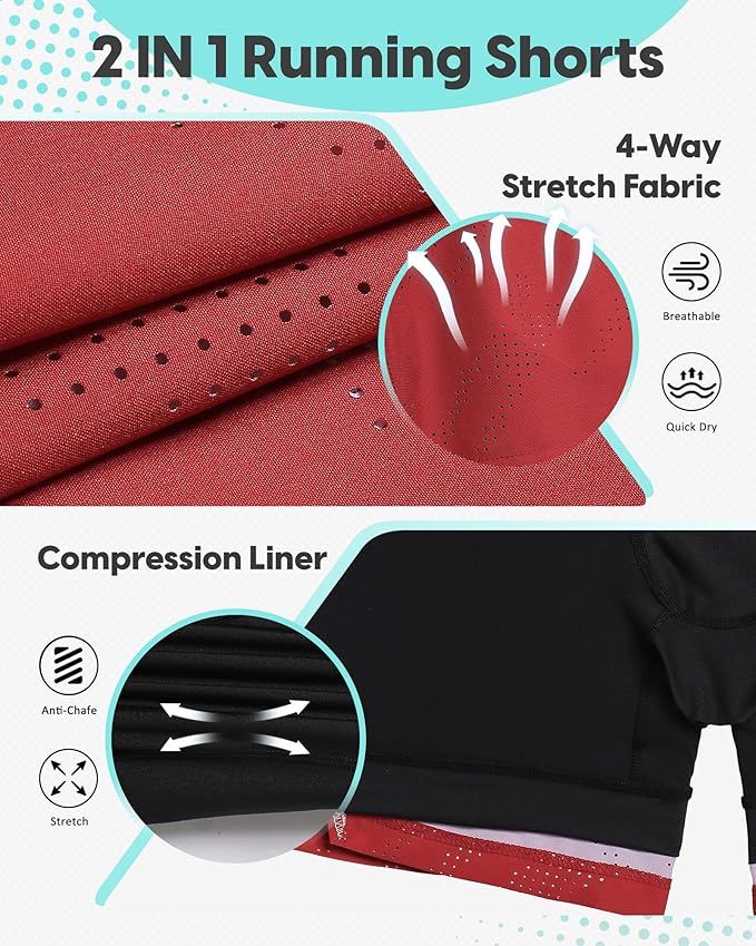 maamgic Mens Running Shorts with Compression Liner 5" Quick Dry Workout Gym Shorts Anti-Chafe 2 in 1 Athletic Shorts