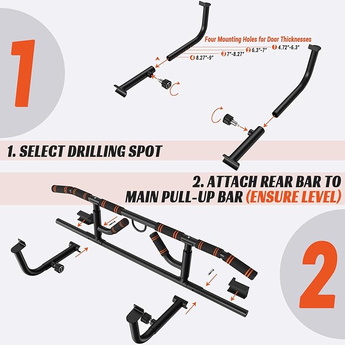 - Easy Installation: The chin up bar is easy to install with a simple design, perfect for at-home pull up bars. Assembly is quick, even for beginners, allowing you to start strength training without delay