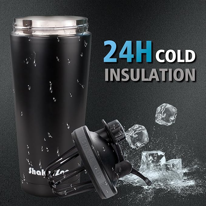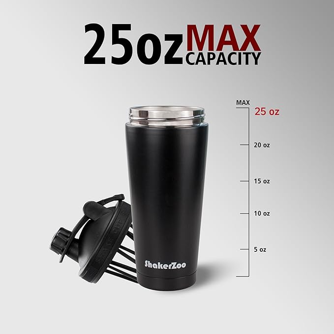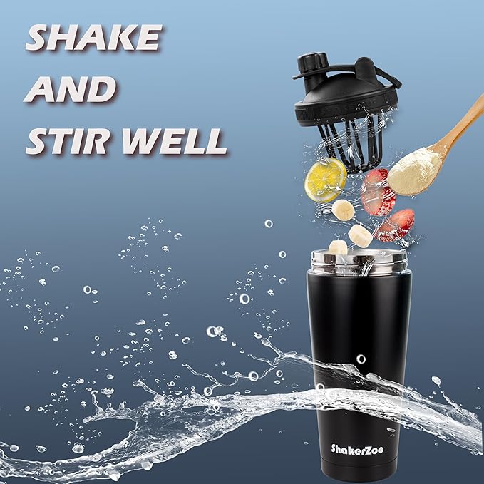 ShakerZoo-1 Pack-Protein Shaker bottles for Protein Mixes, Insulated Stainless Steel Shaker cup (Black)