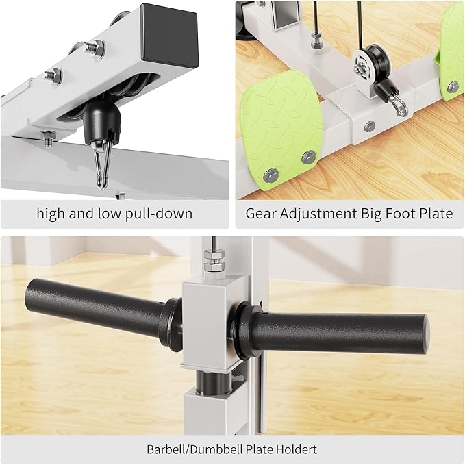 - 【Sturdy and Durable Home Fitness Station】The home fitness system is made of heavy-duty steel frame, which ensures structural stability and durability. With a footprint of 42.5“L x 60‘W x 82.3’H, L01, and a total bare machine weight of 590 lbs, it can withstand up to 1,800 lbs of weight during training with great stability.
