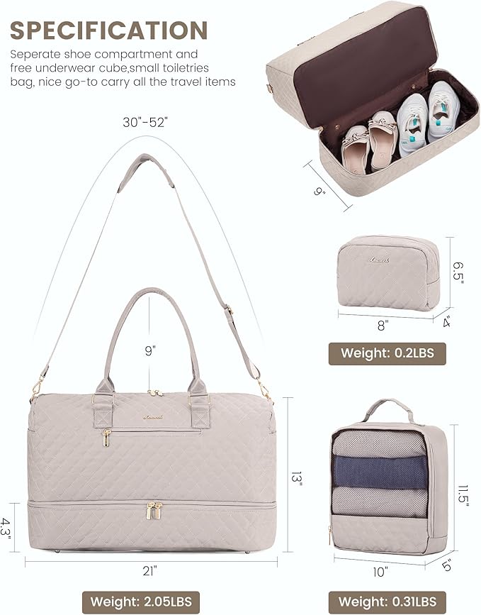 - ✅【Separate Shoe Compartment with Ventilation】:This overnight bag for women has a separate shoe compartment with ventilation, which can keep your shoes separate from clean clothes while avoiding unpleasant odors. If you're a novice mom, you can also use it as a mommy bag, and the bottom is also perfect for storing diaper bag items. Can also be used as a hospital bag or medical bag.