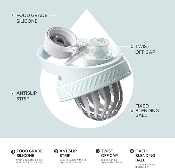 - 【Quick-Clean Convenience】Designed for ease, the wide-mouth stainless shaker bottle and detachable components make cleaning a breeze—no hidden residue, just effortless maintenance.