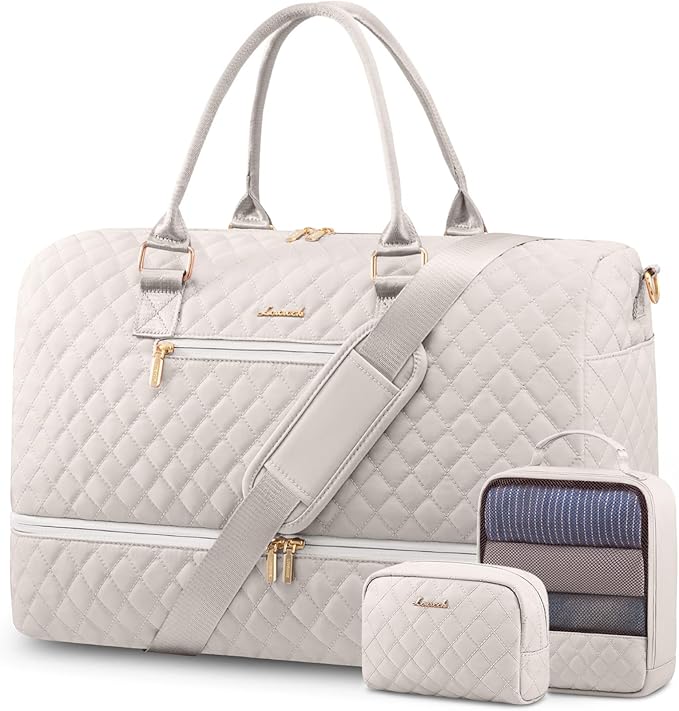 LOVEVOOK Travel Duffle Bag for Women, Weekender Overnight Bag with Shoe Compartment, Carry on Bag with Toiletry Bag, Gym Duffel Bag with Wet Pocket, Hospital Bags for Labor and Delivery 3 Pcs Set