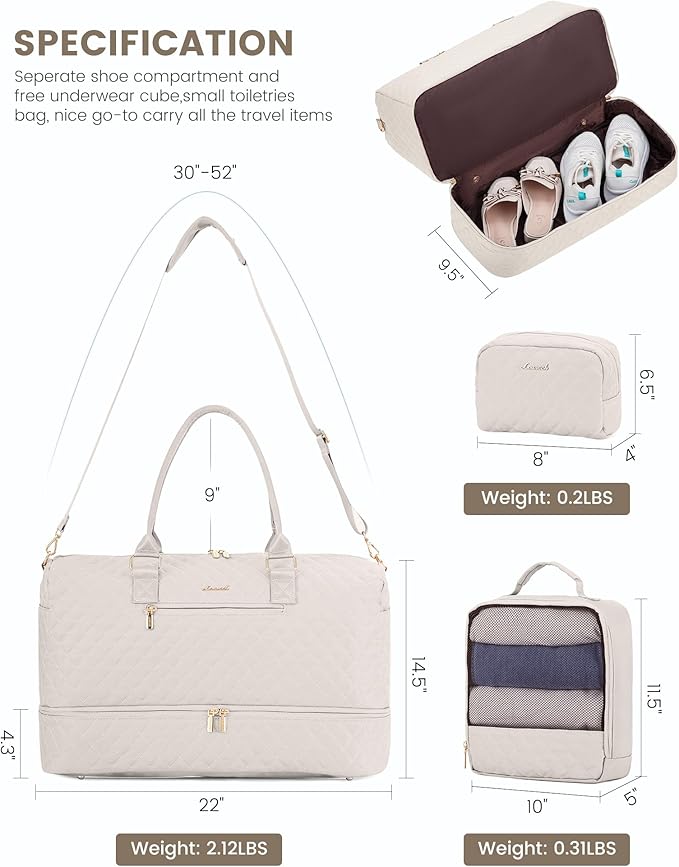 - ✅【Separate Shoe Compartment with Ventilation】:This overnight bag for women has a separate shoe compartment with ventilation, which can keep your shoes separate from clean clothes while avoiding unpleasant odors. If you're a novice mom, you can also use it as a mommy bag, and the bottom is also perfect for storing diaper bag items. Can also be used as a hospital bag or medical bag.