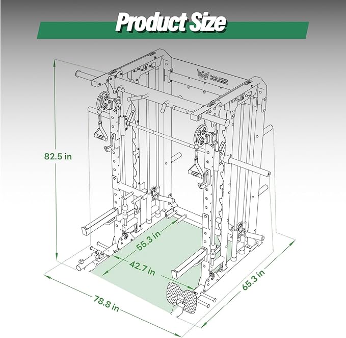 - All-in-One Smith Machine Home Gym for Full-Body Workouts, the B52 squat rack combines multiple systems: a machine with power rack, cable crossover machine, landmine attachment, and multi-grip pull-up bar. With 90+ exercise options, it offers a complete solution for strength training within a compact footprint.