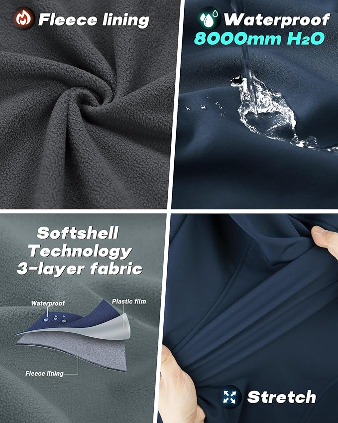 • Windproof & Water-resistant Fleece-lined Softshell Vest---- The outer fabric sheds water and blocks wind well while retaining heat with the soft cozy fleece backing, helping you stay warm without being weighed down.