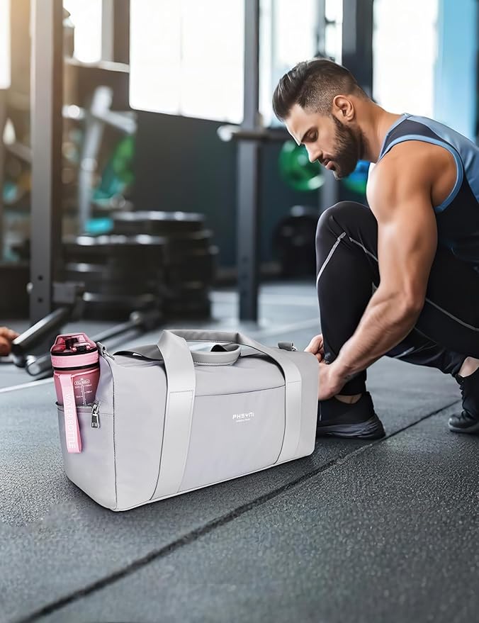 Gym Bag for Men and Women with Shoe Compartment & Wet Pocket - Duffle Bag for Travel Sports Fitness Workout Athletic, 19" Medium, Neutral Grey