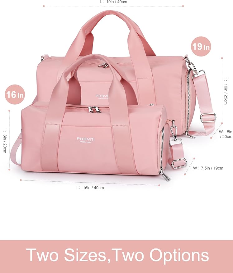 Pink Gym Bag for Women Girls with Shoe Compartment & Wet Pocket - Duffle Bag for Travel Sports Fitness Workout Athletic, 19"- Medium