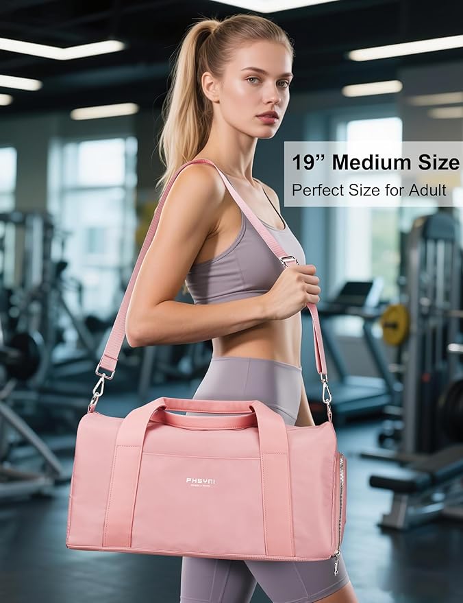 - Sports with Stylish 2025 New Release- Medium size in 19" L x 8" W x 10"H, Volume 25 Liters (approx.), Weight 1.5 Pounds. Not too big and bulky for women and girls. Not too small for men, easy pack your larger gym gears such as 17" barbell pad. Perfect for going to the gym, dance, ballet, swimming, running, fitness activities, sports practices or for use as a weekend carryall