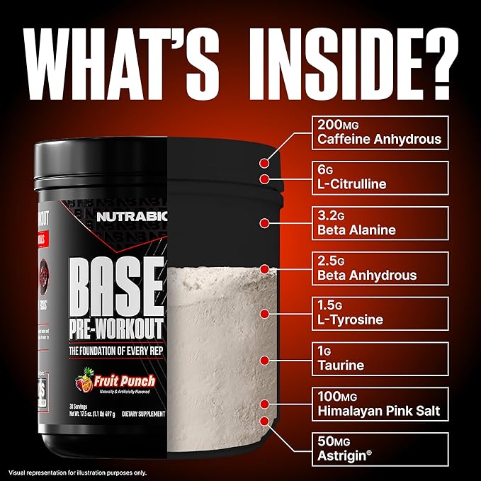- Long-Lasting Energy: NutraBio Base delivers a clean pre workout with 200mg caffeine and beta alanine for men and women giving sustained energy to power through every set without the jitters or crash.
