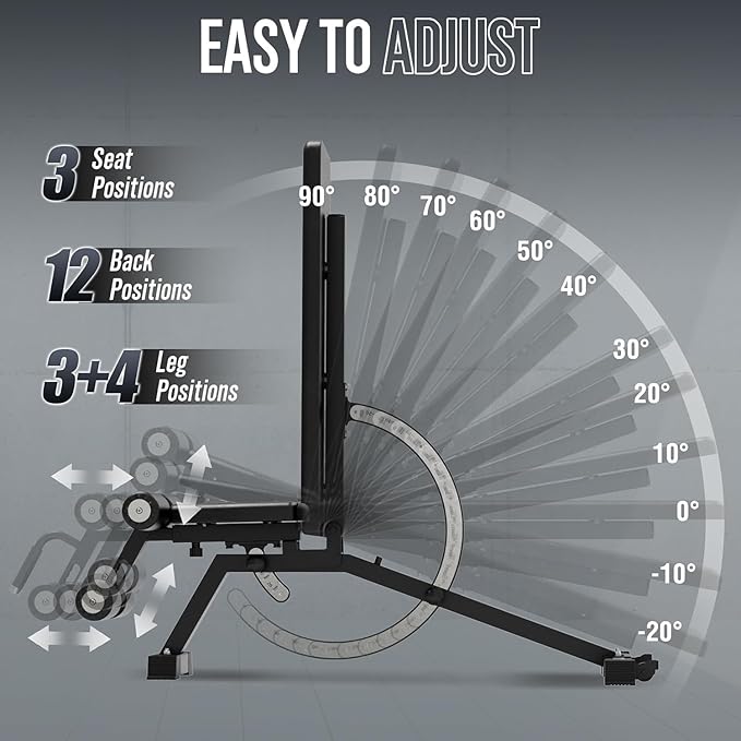 - [FULL BODY WORKOUTS]: Complete with a detachable pull-up bar, premium J hooks, and a single-handed adjustable pulley system offering 15 height options, this squat rack home gym is designed for versatility and convenience. With over 80 different full-body exercises including squats, bench presses, seated rows, cable flies, bicep curls, kickbacks, and more, it's the perfect choice for fitness enthusiasts seeking a comprehensive workout experience.