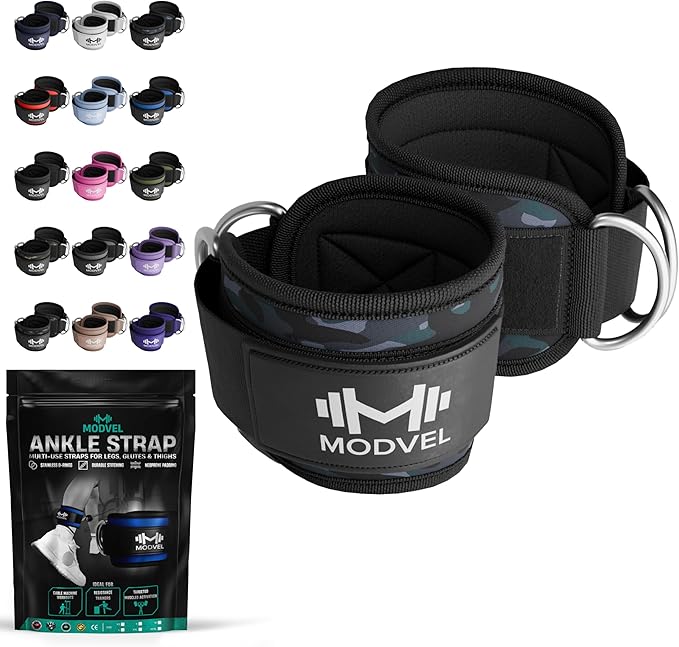 Modvel Gym Ankle Strap for Cable Machines – Glute & Leg Kickback Ankle Straps for Gym Workouts – Adjustable, Padded Support for Strength Training, Weightlifting, Rehab – Men & Women