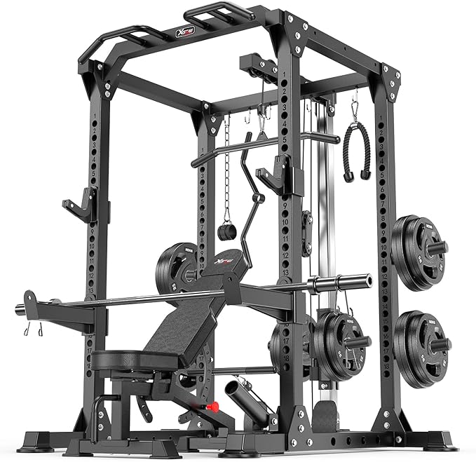 - TOTAL BODY WORKOUT L01 power cage with cable crossover system can satisfy your different training purposes such as wide/close-grip pull-ups, squat, weight lifting, bench press, dips and push-ups. It helps you carry out total body workout at home and sculpt muscles on your arms, shoulders, back, buttocks, chest and abdomen
