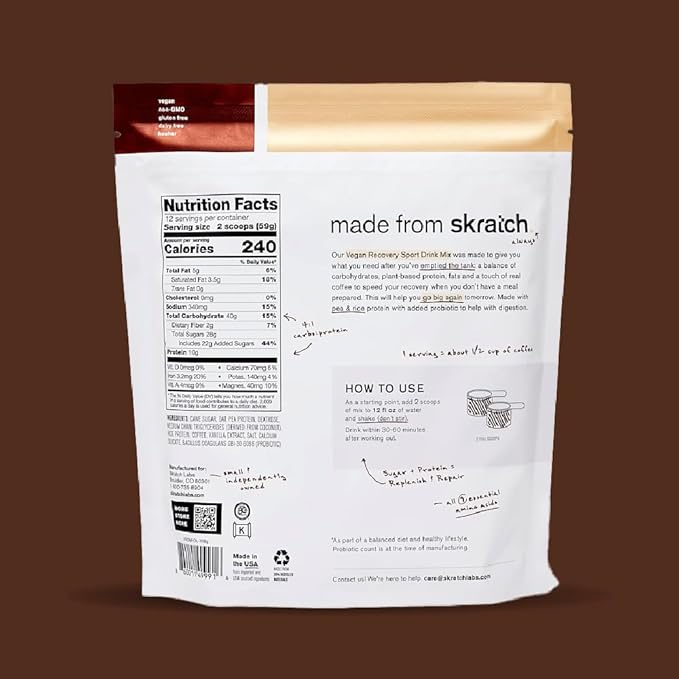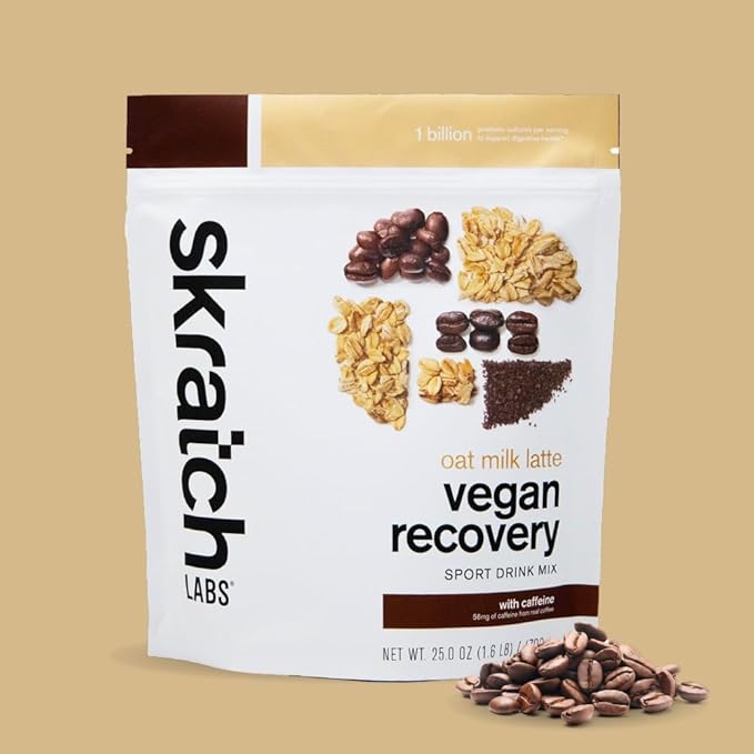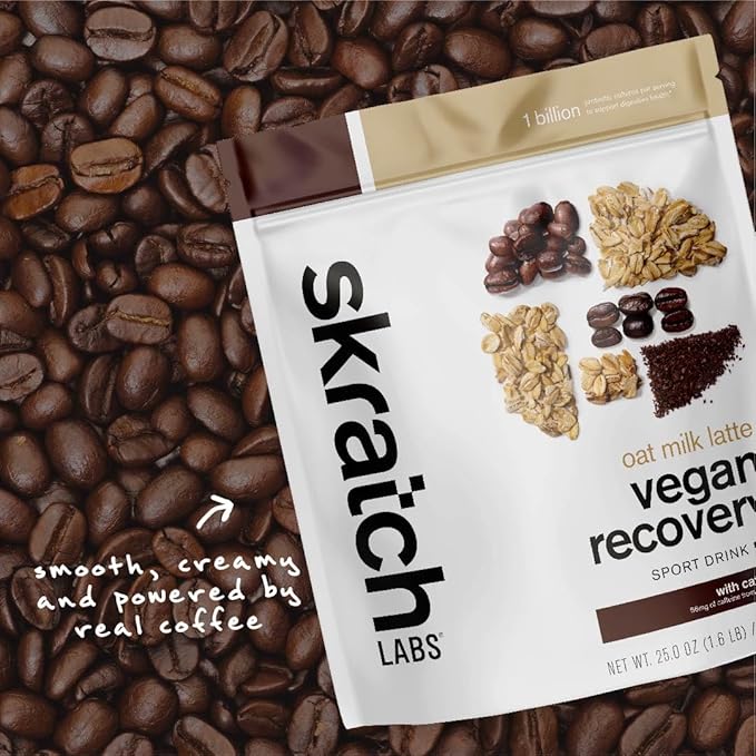 Skratch Labs Recovery Drink Mix - Oat Milk Latte - Post Workout Powder - Complete Plant Protein and Probiotics - 56mg of Caffeine from Coffee - 12 Servings - Gluten Free, Kosher, Non-GMO