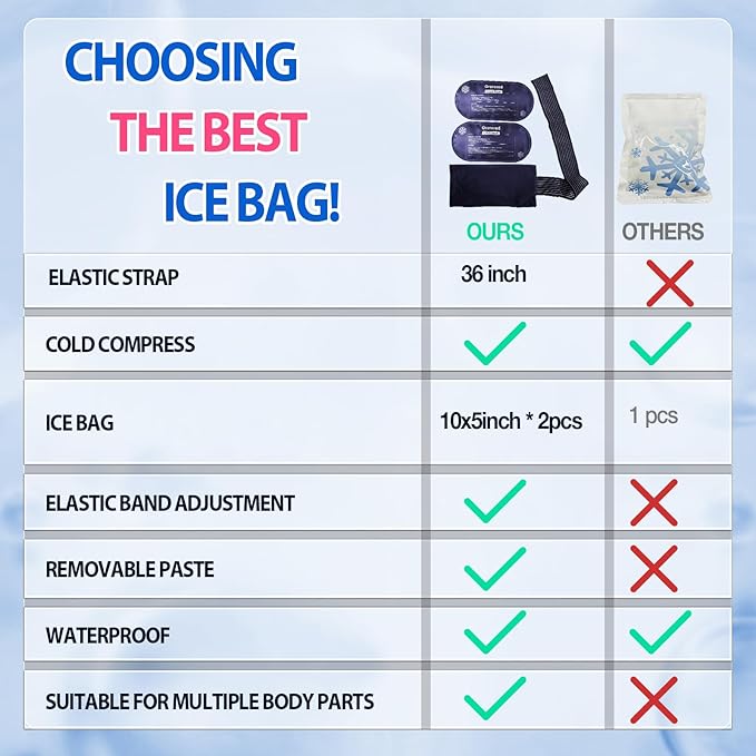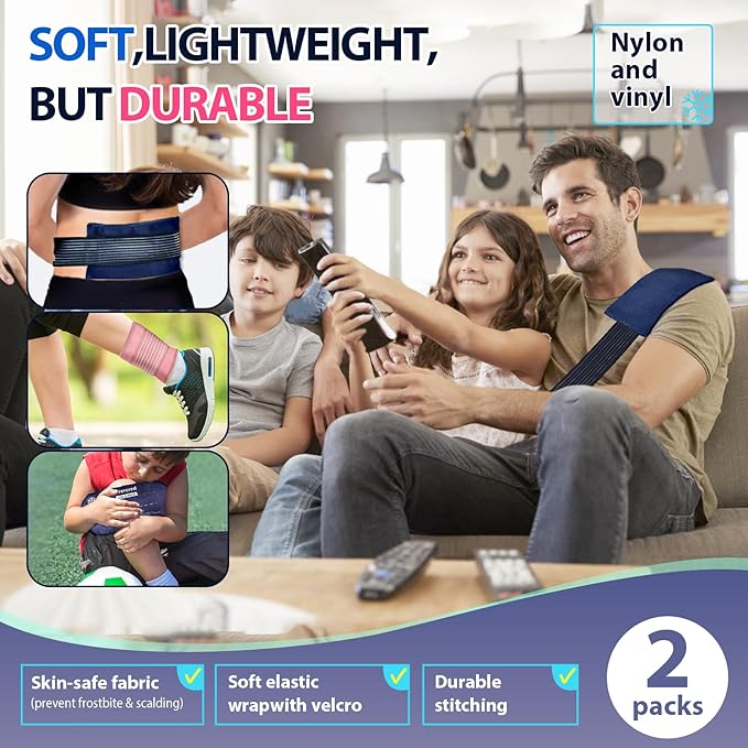 - HANDS-FREE AND STAYS IN PLACE: This ice pack wrap including a washable fabric cover with a long elastic strap to hold the ice wrap, makes the soft ice pack gel is possible to wrap around the arm, back, shoulder, waist, and secure in place. Whether you're recovering from an injury or simply seeking relief from everyday aches and pains, our cold packs will always be there to provide you with the comfort and support you need.
