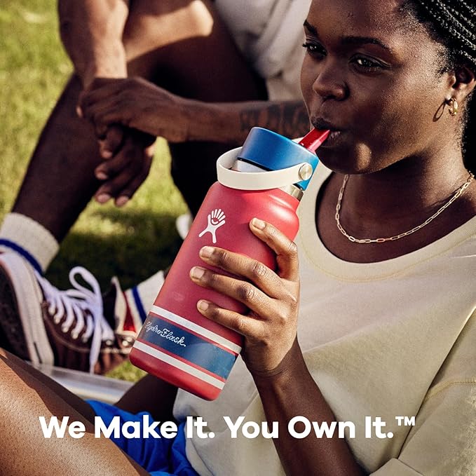 Hydro Flask Water Bottle - Insulated Stainless Steel - Wide Mouth Flex Straw Lid, Non Spill, Leakproof and Refillable in 32 Oz Campus Ivory