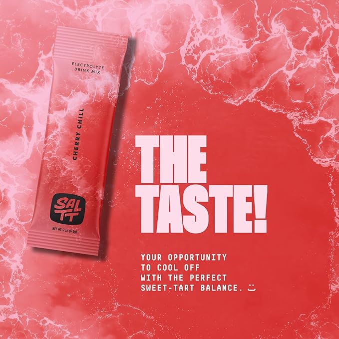 SALTT Electrolytes Powder Flavored Drink Mix - Cherry Chill - 30 Hydration Packets - Magnesium, Potassium, Sodium, Trace Minerals - Zero Sugar & Gluten Free - Travel Essentials