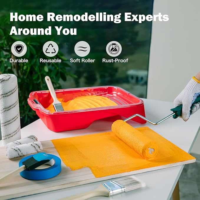 - Durable Design Built to Last: The magnetic brush holder, textured tray, and ergonomic frame are engineered for ease of use, making this set a reliable choice for professionals and DIY enthusiasts alike. The roller frame rest at the tray bottom and microfiber covers deliver smooth, professional results on any surface—ideal for home or commercial use