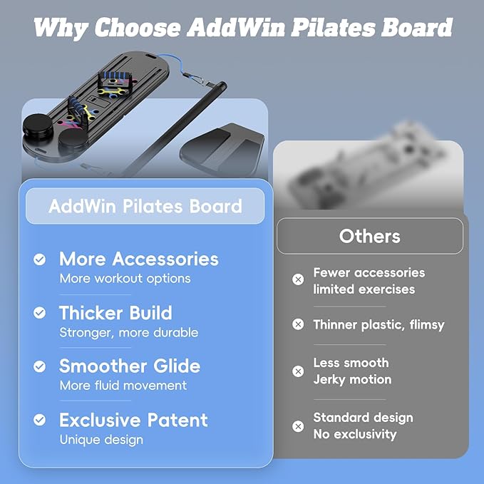 - 【Stylish Pilates Board for Every Space】AddWin Pilates board combines style and function, available in elegant lavender for a chic touch, cool gray for a modern feel, and bold black for a sleek, athletic look. Perfect for any space—home, office, dorm, or living room—this board is both visually appealing and versatile. Watch our behind-the-scenes video to see the craftsmanship that makes this board both stylish and practical