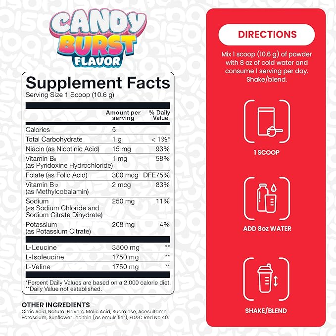 BCAA Powder, Instantized Formula with 7g BCAAs, 2:1:1 Ratio, 450mg of Electrolytes, Sugar-Free, Vegan, Gluten-Free, Supports Muscle Recovery