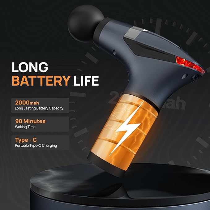 - ๐ ๐๐ฌ๐ญ ๐๐๐-๐ ๐๐ก๐๐ซ๐ ๐ข๐ง๐ & ๐-๐๐จ๐ฎ๐ซ ๐๐ฎ๐ง๐ญ๐ข๐ฆ๐: The 2000mAh battery quickly recharges via USB-C in just 2.5 hours, providing up to 90 Mins of cordless use. It automatically stops after 15 minutes to prevent overuse. Its compact, travel-ready design makes it perfect for gym sessions or home recovery.