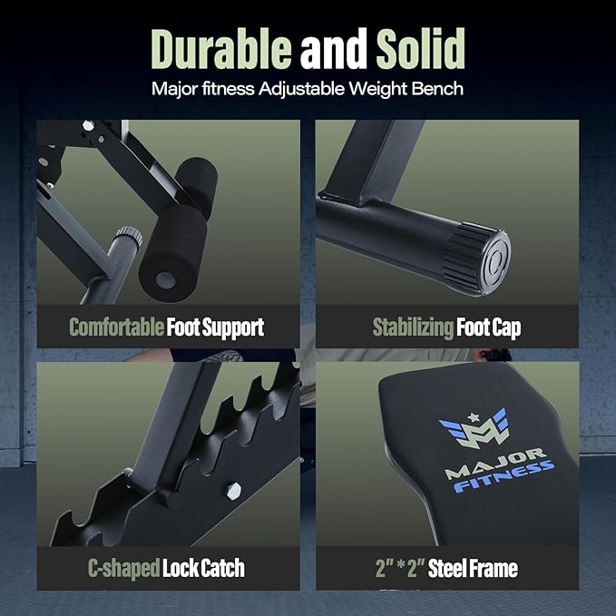 MAJOR FITNESS Weight Bench, Adjustable Workout Bench for Strength Training, Bench Press, and Full-Body Workouts for Home Garage Gym