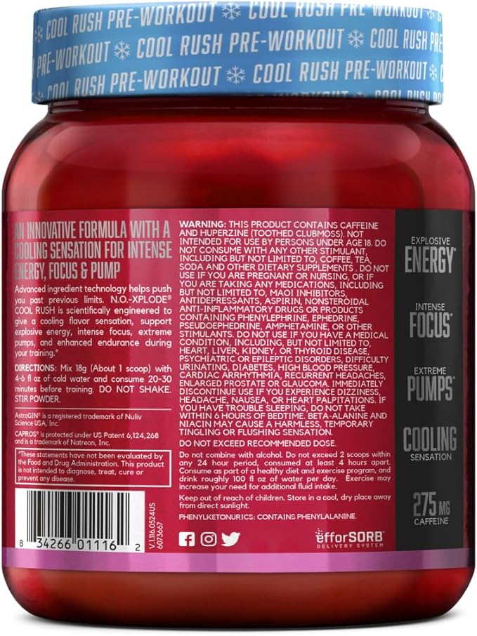 - N.O.-XPLODE PRE-WORKOUT CHERRY LIME ICE – legendary pre-workout with industry heritage that has helped athletes train harder since 2006