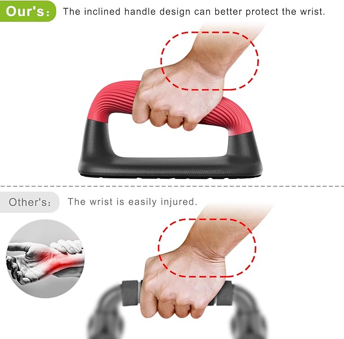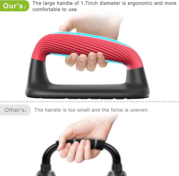 - Comfortable Handle: The handles of push-ups are made of high-quality soft plastic, protect your hands, it’s not easy to get calluses. The diameter is 1 3/5 inches, and the grip is comfortable and ergonomic